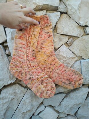 This socks are worked flat and seamed with a crochet hook after finishing all the knitting. The heel turn, gusset and sole will be purled, not knitted, on the outside of your sock.