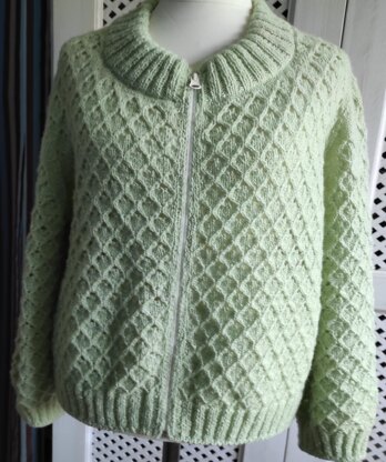 Instructions for knitting a zippered jacket with a patterned pattern Size XXL