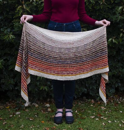 Created specifically for mini-skeins, Intermission pairs stripes with basic lace to create the shawl of your lazy weekend dreams. Take a moment, relax, and enjoy the colour play.