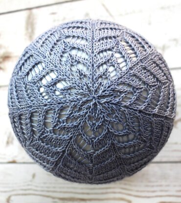 Inspired by the delicate star shaped flowers of the Ipheion plant this hat has a pretty all over lace pattern that culminates in an eye catching star pattern crown.