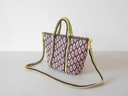 This pattern is published for free in my blog. If you want the formatted, ad free, 15 page PDF document (with written instructions for the bag, chart and also including more than 70 images in photo tutorials) of the Iris Tapestry Bag, this is available in my pattern store.
