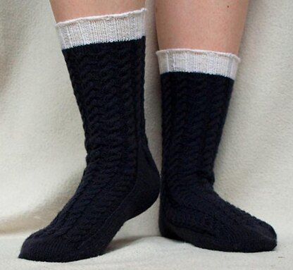Like their namesake ales, the Irish Stout socks have creamy heads and rich, dark bodies. The simple cables resemble droplets of ale settling in a glass and create a snug but stretchy fit. The socks are knitted in the round from the toe-up and a chart for the cable pattern is included.