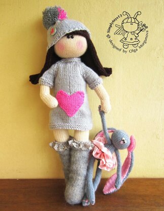 Materials needed  • 2 needles or circular needles in a size suitable for the yarn weight you are using. I recommend using needles a size or two smaller than the yarn calls for, to produce a firm fabric. İ used Needles size 2,5 (3mm) for doll, size 4 (3,5mm), size 6(4mm) for clothing, size 6 (4mm) for wig.  • Cream yarn Special Stylecraft DK color 1005 (100% acrylic 304 meters / 100 grams) for doll • Gray(color 1203) and pink (color 1241) yarn Special Stylecraft (100% acrylic 304 meters / 100 grams)for dress and beret  • Dark brown yarn (color 1004) Special Stylecraft (100% acrylic 304 meters / 100 grams)for wig  • Gray Kid-mohair(Kid Mohair by Phildar Mohair Soie color Givre (1370) ( Lace 70% Mohair, 30% Silk 195 meters / 25 grams) for stockings