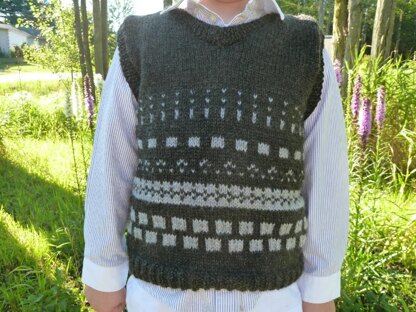 “Isuqtaq” is the Eskimo word for the colour “Gray”.This small sleeveless sweater has been specially designed to put above shirt. Black andgray are a classic that goes with all kinds of colors.Instructions are given for a size 6-8 years.Measurements: 44 cm (shoulder to waist) * 33 cm (wide)This model uses the technique Fair Isle (Jacquard =) with only 2 threads: black and gray.It is intended for intermediate knitters, but the instructions are given row by row making itaccessible to beginners.