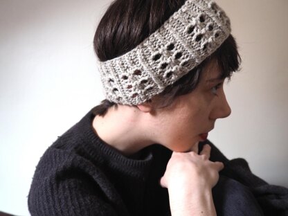 This headband will make you travel East in an oriental dream with its elegant stitch pattern inspired by an elephant head. Knitted in the round, is starts and ends with a portion of backloop ribbing. The stitch pattern is made of ktbl stitches, simple yarn overs and a double central decrease. Using less than 25 grams of Aran yarn, it is a perfect project to use your favorite mini skein or a beautiful leftover.