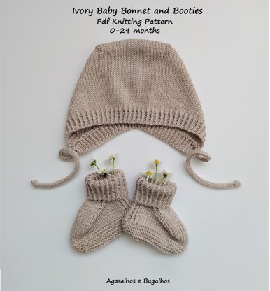 The Ivory Baby Bonnet and Booties are a comfortable set that never goes out of style.