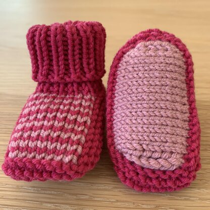 The stocking stitch instep can be worked in a single colour or in one-row stripes.
