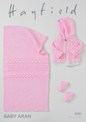 Jacket, Bootees and Blanket in Hayfield Baby Aran - 4680- Downloadable PDF
