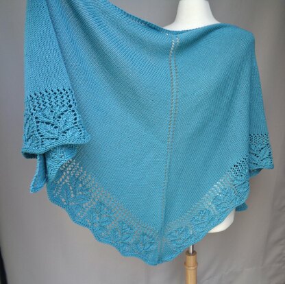 A light summer layer, this lovely shawl is worked in stockinette, bordered with an elegant lattice and leaf design.