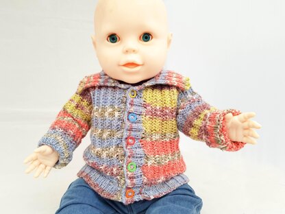 I designed this cardigan specifically with King Cole Drifter yarn in mind. This yarn has many colour schemes to choose from, and I think it is a great yarn for children. Of course, any other DK yarn will work just as well. The stitch I used resembles brioche, but is easier to work and requires a lot less yarn. It is just a clever modification of simple garter stitch. This cardigan has classic shaping, with a nice wide fold down collar to make it a little bit special. The pattern comes in 6 sizes:0-6 months, 6-12 months, 1-2 years, 2-3 years, 4-5 years, 6-7 years To fit chest of 41- 46- 51- 56- 61- 66 cm or 16- 18- 20- 22- 24- 26 " Materials: DK yarn, King Cole Drifter Colorado approx. 300 meters (329 yds ) per 100 g ball Approx. 100- 150 -200- 250- 300 -350 g