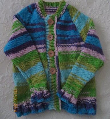 I have knit two children’s sweaters with this yarn. It is comfortable to knit with and works up well. It is ideal for young children since it is acrylic and easily washed! I will be knitting two more cardigans this spring.