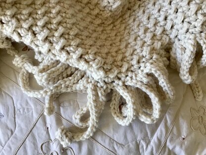 Sumptuous cords and motifs line the edge of the January Child Boho Throw. Completely reversible. Warm and comfy. Fits any decor in any room. Simple crochet stitches throughout.
