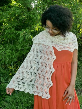 An airy stole consisting of a single stitch motif, perfect for a light covering indoors or out. Makes a good knitting project for a beginning or intermediate lace knitter, and a quick knit for a more experienced knitter.