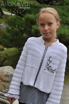 So sweet and feminine. Let her choose her favorite color. My favorite part of this jacket it its Striped pattern, which is alternating bands of Oh My! yarn and plain cotton applied to the sleeves and front of the jacket. Rows of plain cotton emphasize the Beauty and texture of Oh my! amazingly!!! Just in time for holidays (although practical enough to be worn every day).
