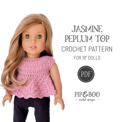 A cute, textured little peplum top for 18" dolls such as American Girl®, it features fun stitches and is a perfect stash busting pattern!