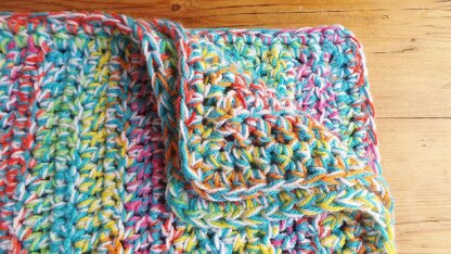 Standout in the crowd with this cute and colorful super chunky blanket! This magical mix of affordable and beautiful coloured acrylic yarns, using 3 strands together produce a very quick blanket with a truly stunning effect!