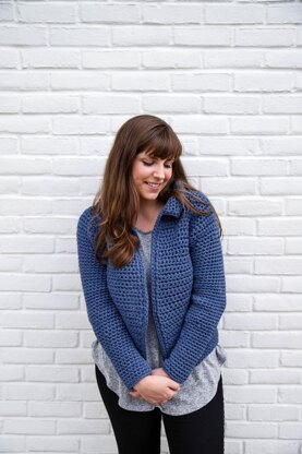 This adult sized crochet cardigan can be worked up in a day and is so very easy! It uses all single crochet and is worked from the top down! It is a great project for those still new to the craft - very beginner friendly. It is the perfect size and weight - worked in bulky weight yarn for a fast project and cozy fit.