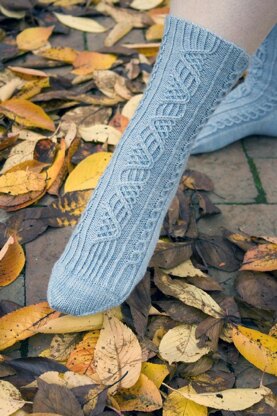 The rune Jera (pronounced yer-ah) is the 12th rune of the Elder Futhark, representing “the year” or “the harvest.” These socks use twisted stitches and cable crosses to form a pattern that resembles the rune, but would be pretty at any time of year!