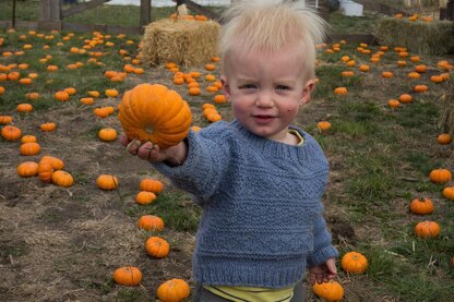 This easy child's gansey is knitted in worsted weight yarn. The garment includes horizontal patterning and simple shoulder extensions, seam stitches, bisected underarm gussets, and ribbed cuff, neckband, bottom edge. It is knitted the round from the cast-on to the underarm, then knitted flat in the upper body to the shoulders. Once the shoulders are joined, the sleeves are picked up and knitted down to the cuffs. A seamless garment! The gauge is 18 sts and 24 rows/rnds per 4″ /10 cm in St st.