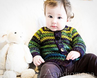 Jess and Taylor cardigan is a part of the “In the Nursery” ebook. This cardigan is designed to be unisex; the choice of color will make it boyish or girly. Jess and Taylor is a perfect gift to knit for any baby. The garment is worked from the top down and is completely seamless. A touch of texture and color changes make this cardigan a very interesting and engaging knit. This design is suitable for all levels of knitter.