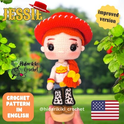 Crochet your own adorable Jessie amigurumi doll, inspired by the brave cowgirl from Toy Story, with this detailed PDF crochet pattern.