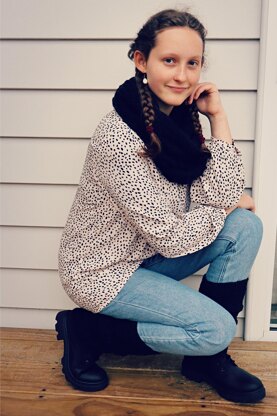 Materials:• DK or light worsted weight yarn in black or color of choice: o Cowl: approx. 520 yards; Leg Warmers: approx. 270 yards • Crochet hook size H (5.0 mm) • Yarn needle to weave in ends