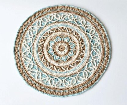 This Mandala is named after my friend Joana who inspired me to design it. It is made in overlay crochet technique with lots of front post stitches. The mandala is nicely structured and can be made in more than 3 colors. It can be used as a table decoration, appliqu for a pillow cover, stool cover, potholder and even a round pillow.