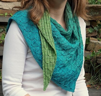 Joia is an assymetrical triangular shawl that grows from one tip to the opposite edge. Fashioned in easy-to-memorize smocking stitch, it works up quickly to make a beautiful accessory with texture that pops. This shawl looks great in a gradient yarn set or in a single color.