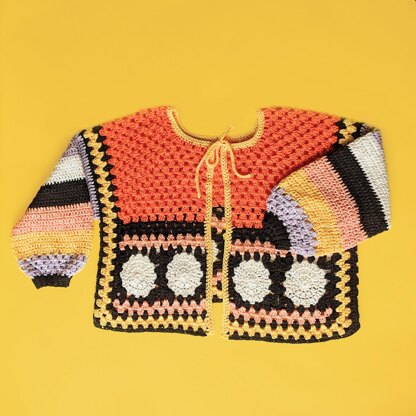 Worked in Aran weight yarn make a cool summer number perfect for an evening cover up in a light weight tape yarn or a fluffy wool number for those cooler days! The design uses a join as you go method so is all constructed with crochet, with no sewing together. The pattern is full of step by step photos and a motif schematic to guide you through the whole process.