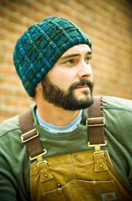 The J.T. hat features a slip-stitch vertical rib with a horizontal indent, giving this pattern a masculine, rectangular, multi-block design. With a quick and simple cable stitch, this is a great pattern for the intermediate knitter. A quick knit with beautiful results.