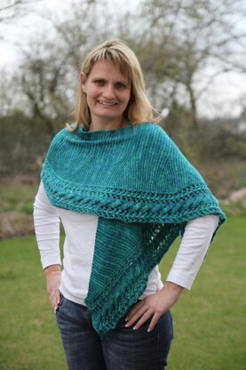 This is a shawl I created and dedicated to my sister who is the best sister anyone could ever have and who I miss terribly because we are much too far apart. Elegant, just as my sister, JudyB is a simple crescent shaped shawl knit with silk and cashmere to give it drape and a touch of luxury wrapped around your shoulders. She is knit in garter stitch with lace and reversible cables using short rows to give her that unique shape.