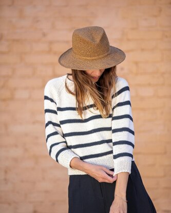 The JULES Sweater is a classic raglan sweater in a striped pattern. An allrounder, which is easy to combine and can be worn with shorts in summer, but also fits perfectly under a trench coat. In addition to the classic version of the sweater with 'normal' body and sleeve length, there is a short (cropped) version with three-quarter sleeves that can be perfectly combined with high-waisted pants and skirts.