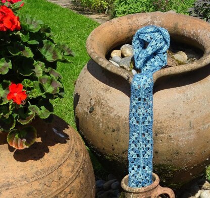 This is the 7th design of 2014 and is based on granny squares joined as one long piece (I have also done this with granny circles - June Crochet Scarf). I choose a silk yarn, for drape and because it is cool which is good for summer in the UK. The colours are also cool blues. I used 2 colours but you could use 4 if you like. The yarn is double knit, but you can choose any weight of yarn provided you use a suitable hook size. And adjust the foundation to be a suitable length If you are used to granny stitches, you will find this makes up very quickly. The scarf is approx. 10 cm (4”) wide by 150 cm (59”) long when blocked. The pattern is written in English and US crochet terms, and is charted. Once you have mastered the continuous row of 4 round grannies, you could easily adapt to 5 or more rounds. A blanket/throw could be made by making strips of grannies then joining them - much quicker than a normal granny throw!
