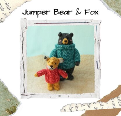 Knitting Pattern PDF to make a bear and a fox in jumpers.