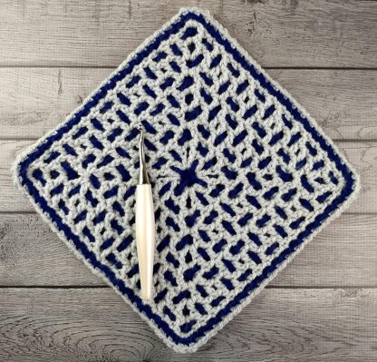 This is the 6th of 12 interlocking crochet squares that will be released in this set. All 12 are worked using interlocking crochet in the round. Enjoy!