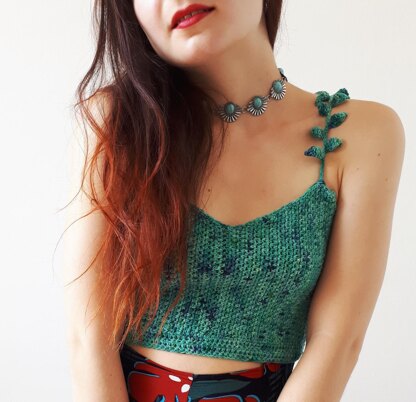 Nature plays a big part in my life and I love everything that is connected with it. I had to make a top with leaves or some sort of plant motive. The top is very durable and surprisingly stretchy thanks to the stitch. It is light, easy and beautiful.