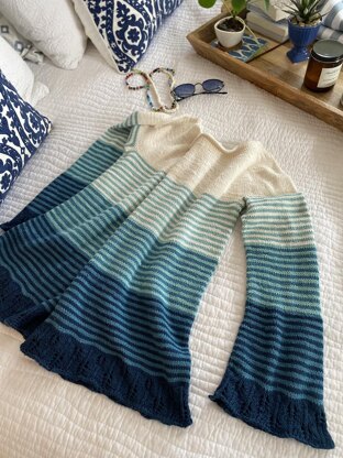 A modern twist on traditional seamless yoke provides a sassy backdrop for some fun details in this feminine sweater. Juniper is a great transitional knit and what a fun and easy way to get the most from stripes! While the lightest shade frames the face, multiple shades in kicky stripes curve upward around the yoke, creating a long, slow gradient that grows darker as it reaches the lacy hem. Its swingy, flared silhouette begins with an open neckline. Three-quarter length sleeves are worked downward from the yoke and are also edged in sweet-as-pie cone and fir lace.