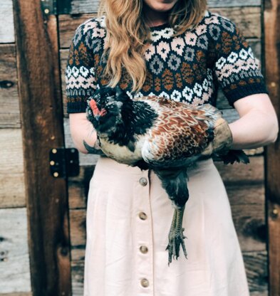 Jupiter Crop a cute, top down sweater inspired by our handsome rooster, Jupiter! All-over colorwork keeps this design fun and flying off your needles! A few rounds with 3 colors to carry add a tiny bit of challenge to keep things interesting. Top-down design means you can try this sweater on as you go, so you can alter the length as needed for your perfect fit.