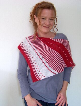 Material:Garn: Malabrigo Sock (100g / 440 yards / 402 Meter) 1 Strang, Farbe Raverly Red (Farbe A) Regia Merino Twist ( 50g / 230 yards 210 Meter 2 Knäul), Farbe weiß (Farbe B) Stricknadeln: 3,5 mm Rundstricknadel, und 4 mm Rundstricknadel (die größere Nadel wird nur zum Abketten benötigt), oder passende Nadelstärke, um die Maschenprobe zu erhalten. Sonstiges: Wollnähnadel zum Vernähen der Fäden Maschenprobe: 24 Maschen und 46 Reihen auf 10 cm mit Nadelstärke Nr. 3,5 mm in kraus rechts, nach dem Waschen und Spannen. Maße: Länge: 160 cm gemessen von Seite zu Seite. Tiefe: 42 cm.
