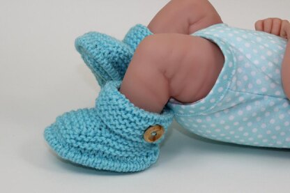 This is my Just For Preemies - One Button Booties knitting pattern. These fabulous booties are really quick and easy to make. The knitting pattern provides full instructions for 5 premature sizes XS (1-2lb), S (2-3lb), M (3-4lb), L (4-5lb) and XL (5-6lb) including numerous step by step photos to help you along the way. They are worked flat in any 4 ply yarn of your choice on 2.25 mm needles.