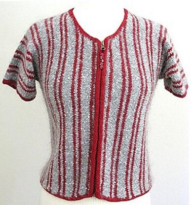 Side-to-side Cardigan is a beautiful cropped jacket with slick lines, drop shoulders and short sleeves closed with a zipper. To give the jacket a more interesting look, all the edges including bottom, sleeve and neckline are decorated with contrasting color I-cord.