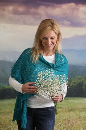 This is a gorgeous wrap knit in two different lace patterns. The Flemish Braid pattern is worked on both sides and the center panel is elfin lace pattern. These two patterns complement each other to create a wonderful cohesive look. Both ends are decorated with a Flemish braid and for a finishing touch fringe is added at both ends.