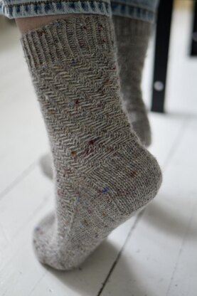 These easygoing Kaarre Socks are very simple to knit with diagonal float stitch pattern. Socks are knitted from cuff down and the pattern is written for the Magic Loop technique, but it is also suitable for knitting with double pointed needles. The heel is worked with a reinforced heel flap and a gusset.