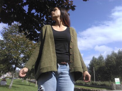 Comfort and style were the inspiration for Kabir, an oversized cardigan with a generous amount of positive ease. It's a nestle up at home or step out in style kind of garment! The cardigan features stocking stitch for the main body and a reverse broken rib stitch for the sleeves, bottom edge, front bands and collar. The simple shape of Kabir is offset with a short row collar and 6/7 buttons.