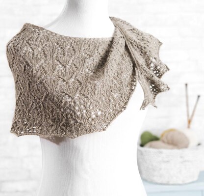 This lacey shawl is worked from the top down with increases at the beginning and end of each right side row to create the crescent shape. The lace patterns are charted, written instructions for the charts are included to help you become more comfortable working from charts.