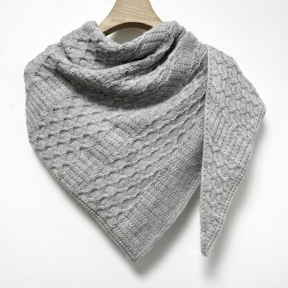 Kai B has an asymmetrical shape with a built-in I- cord edge and is worked flat from the right tip to the left edge.