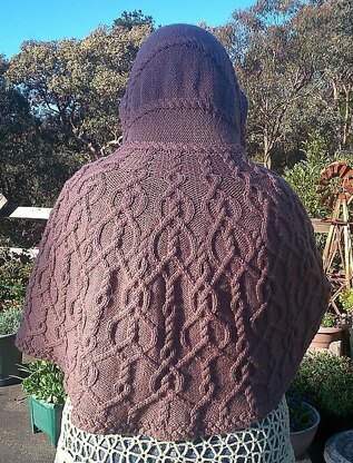 The intertwining cables on the body of the cape were inspired by the rain running down my window in the summer storm which coincided with the inception of this design.