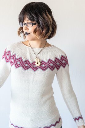 CONSTRUCTION This yoke pullover is worked bottom-up, in the rnd. There is some short row shaping worked at the end around the back of the neck for a better fit around the shoulders. For best fit, select the pattern measurements that 2 - 4 in./5 cm - 10 cm more than your actual size.
