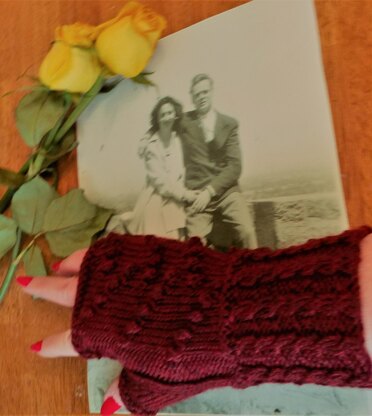 I named these after my grandmother. She always had gorgeous fragrant red rose bushes next to her porch steps. Her favorite color was red, and she had lovely hands with long nails and slender fingers. More often than not, her nails were painted bright red. I like to think that if she were still with us, she would proudly wear these mitts.