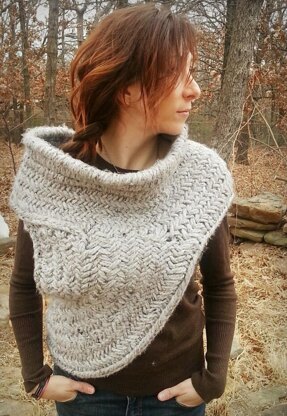 I went to see the second installment of the Hunger Games - Catching Fire - with the intent of keeping a close eye on the knitwear… because I knew it would be awesome! And I was not disappointed. The minute I saw Katniss in this amazing morph between a chunky cowl and a one-arm vest, I was in love! I decided to make my own version of this concept. I made mine a little more fitted to flatter the figure, and I made the cowl a bit smaller and more wearable. What I love about it is that it is meant to look rough and chunky and a little primitive, so you don't have to have perfect little stitches in order to make it look good. This is a one-size piece that fits a standard Med/Large Women’s size top, or a Large/XLarge Junior’s size top.